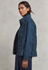 Veste jacquard pour femme à motif patchwork. Modèle à coupe droite avec col montant et patte de boutonnage incurvée fermée par des boutons recouverts de tissu. Manches longues avec poignets boutonnés. Taille abaissée dotée d’un cordon dans une coulisse. Deux poches passepoilées à la taille avec fermeture par bouton. Veste entièrement doublée.